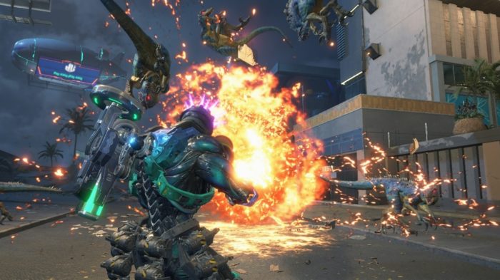 Außerdem ist der Feuereffekt der Granaten nicht standardmäßig auf den Raketen vorhanden. Wenn ihr die Dinos also in Brand setzen wollt, müsst ihr diesen Effekt mithilfe von Modulen oder einfach durch gute altmodische Teamarbeit herbeiführen.